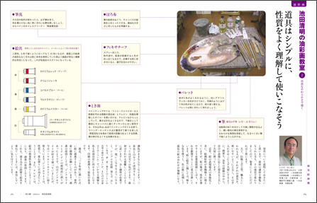 道具の説明のあと、花をもつ女性像の講座へ。つづきは5月号をご覧ください。
