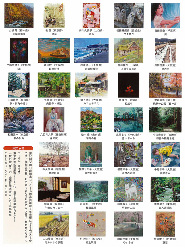 次回、第26回の日曜画家コンクールは2010年の春頃に詳細が決定いたします。いましばらくお待ちください。